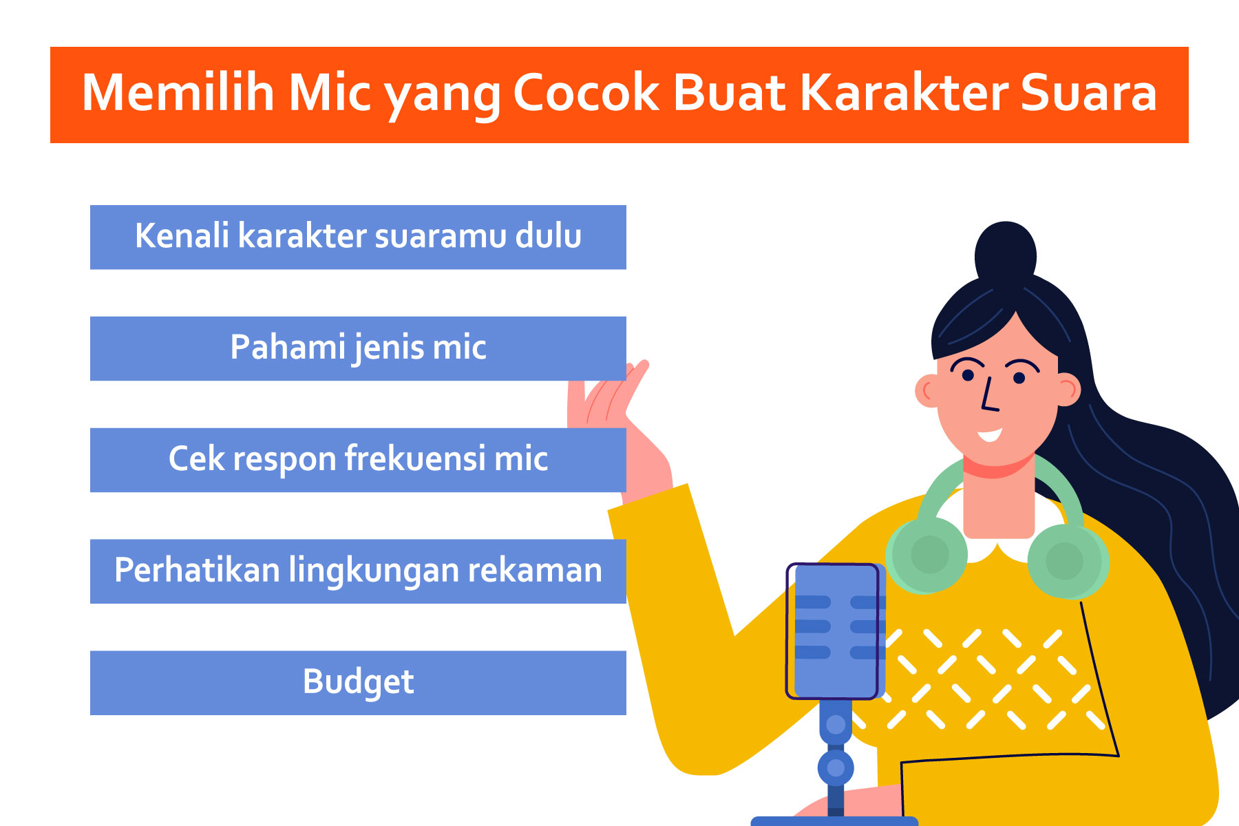 Kamu hanya perlu menggunakan alat yang benar-benar fungsional. Daripada langsung beli mikrofon mahal di awal, mending gunakan mic yang sesuai sama budget dan workflow-mu. Fokus pada skill, portofolio, dan reputasi juga bakal membuka peluang lebih besar dan bikin kamu bisa nabung buat upgrade alat nantinya.