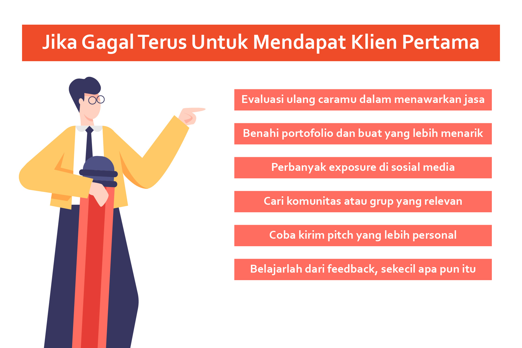 Nggak semua orang dapat project pertama dengan lancar. Jadi, kalau kamu masih gagal terus dapat klien pertama, coba ini: